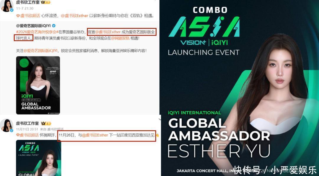 工作室官宣,虞书欣将以爱奇艺国际版全球代言人的身份,在印尼举办粉丝见面会。这个信息真的很让人疑惑。首先她新的突破口身份,是跟猕猴桃合作的,在这么敏感的时期,很多合作方都避之不及了,说明她的资源根基还在。再就是,就非得把见面会安排月刚刚bào乱完的印尼吗?